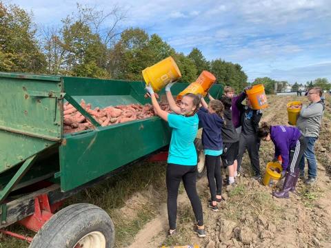 - Grades 6 through 8 harvesting vegetables at Forgotten Harvest Farm for needy families