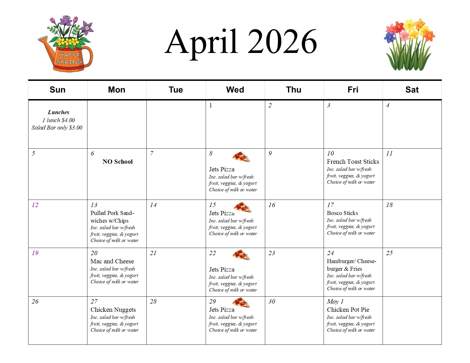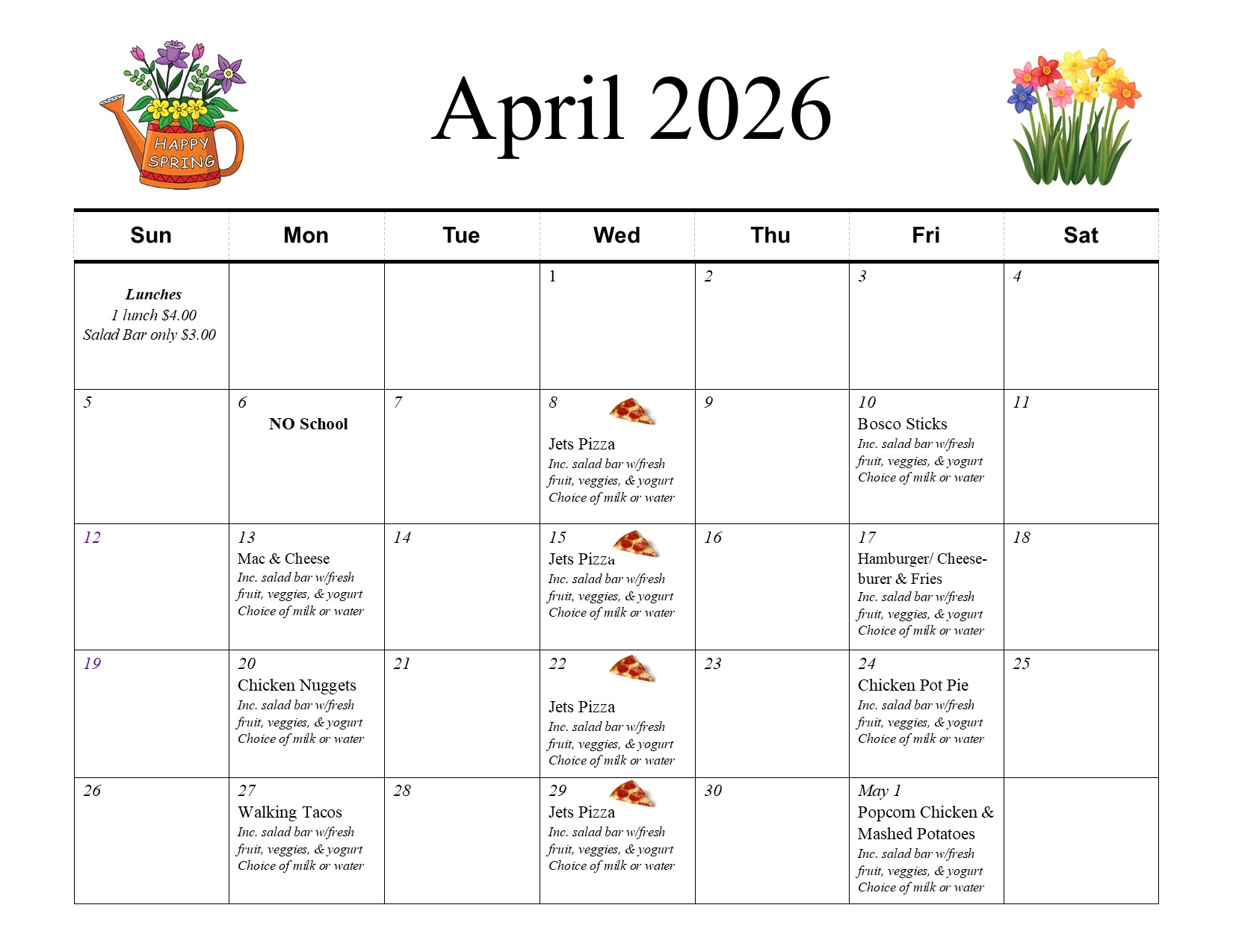 March 30 through April 6 - Spring Break