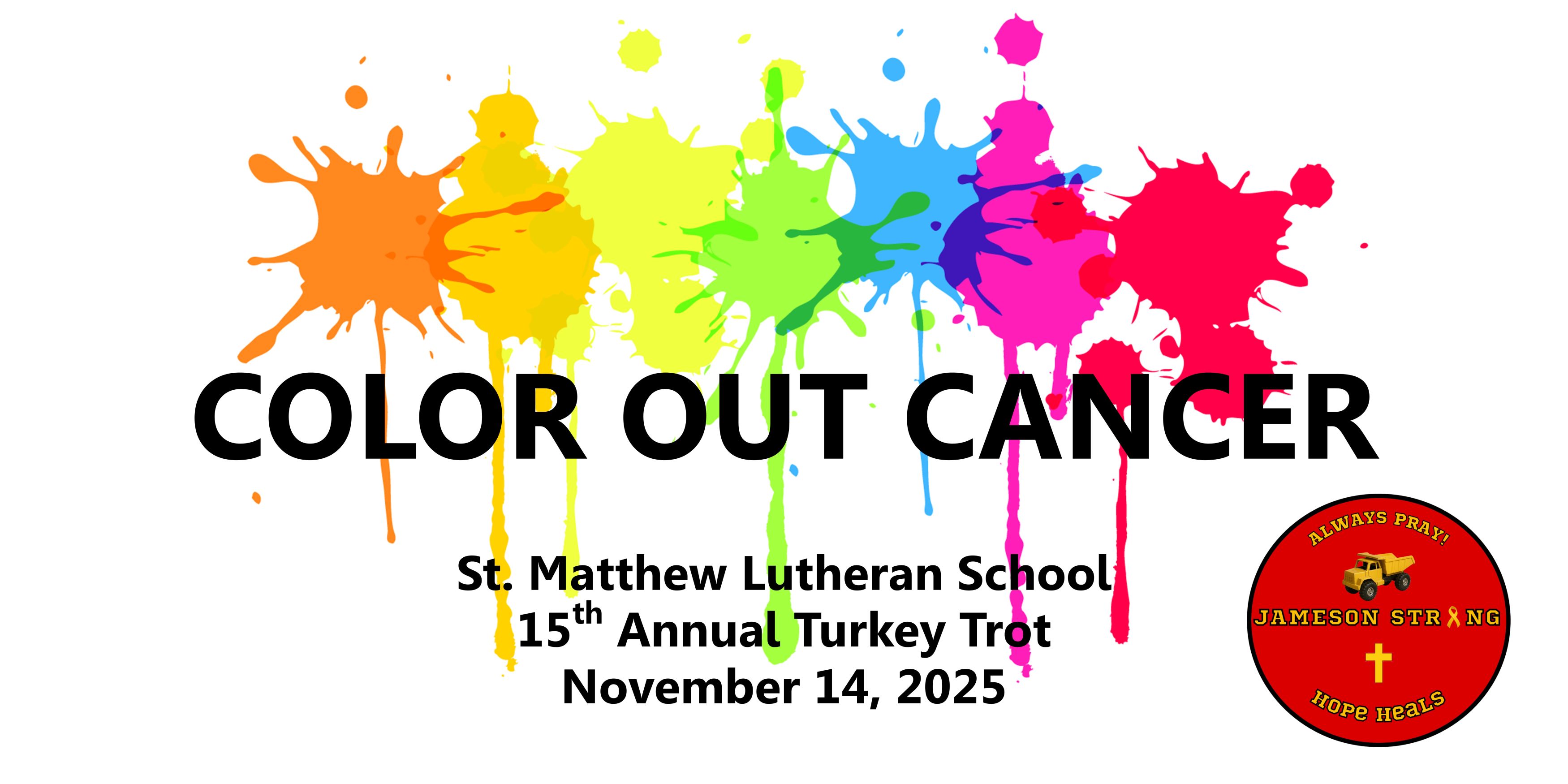 In addition, we realize that so many families are affected by cancer. As a result, we have started a Color Out Cancer prayer chain. In our church lobby, you will find a color chart of the various types of cancer. If you know of someone who is currently dealing with cancer, or who has survived cancer, or someone who you would like us to run in their memory, please write their name on a paper that reflects their color of cancer and put it in the designated box. Our Upper Grade students are making a chain of these papers, and we will pray over it at the start of our Turkey Trot.